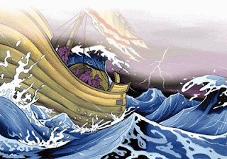 Adapun tentang keadaan Nabi Yunus yang telah meninggalkan kota Ninawa secara mendadak, maka ia berjalan kaki mengembara naik gunung turun gunung tanpa tujuan. Tanpa disadari ia tiba-tiba berada disebuah pantai melihat sekelompok orang yang lagi bergegas-gegas hendak menumpang sebuah kapal. Ia minta dari pemilik kapal agar diperbolehkan ikut serta bersama lain-lain penumpang. Kapal segera melepaskan sauhnya dan meluncur dengan lajunya ke tengah laut yang tenang. Ketenangan laut itu tidak dapat bertahan lama, kerana sekonyong-konyong tergoncang dan terayunlah kapal itu oleh gelombang besar yang datang mendadak diikuti oleh tiupan angin taufan yang kencang, sehingga menjadikan juru mudi kapal berserta seluruh penumpangnya berada dalan keadaan panik ketakutan melihat keadaan kapal yang sudah tidak dapat dikuasai keseimbangannya.